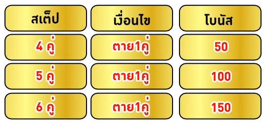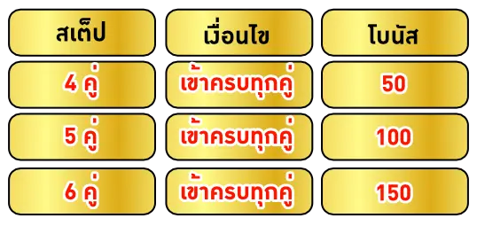 - บิลสเต็ปต้องมียอดแทงขั้นต่ำ 100 บาทขึ้นไป