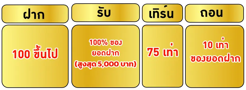 📌 ทำเทิร์น 75 เท่า ถอนได้สูงสุด 10 เท่าของยอดฝาก📌